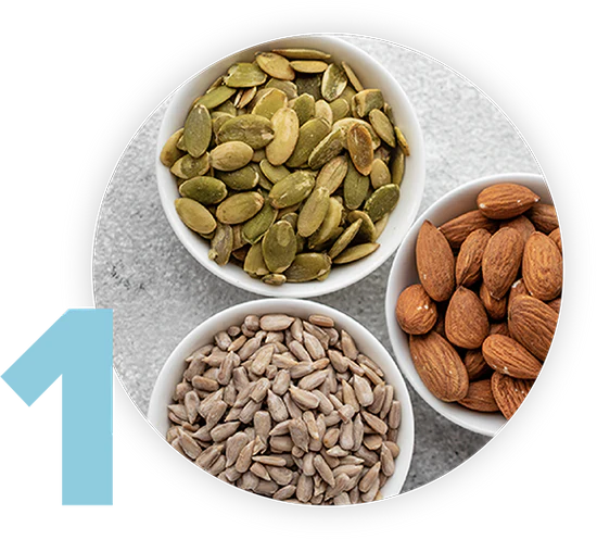 Pumpkin seeds are rich in omega-6s, phosphorus, manganese, magnesium, and iron, and support prostate, bladder, and blood health.*